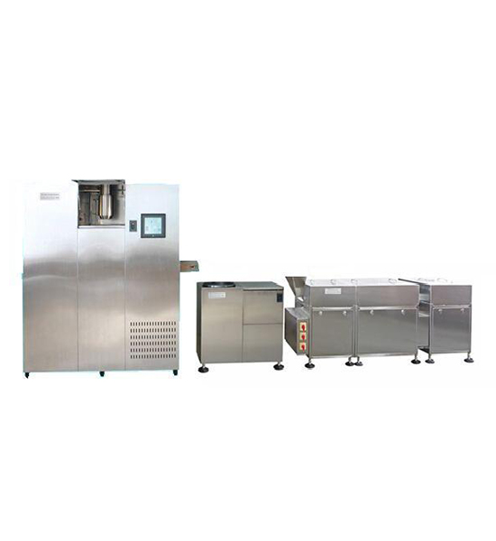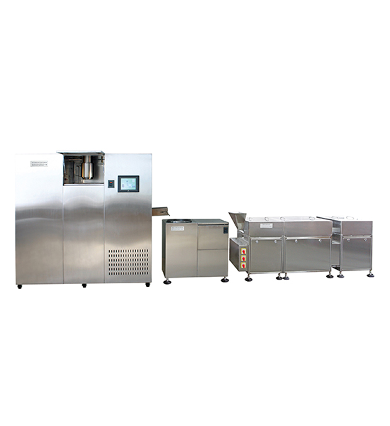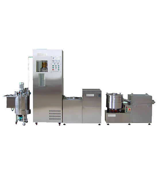 滴丸生產(chǎn)線,由200孔自動化滴丸機和集丸離心機、旋轉(zhuǎn)式篩選機組成??筛鶕?jù)用戶的場地和產(chǎn)能要求,采用10個或更多的滴制系統(tǒng)(每個滴制系統(tǒng)100孔滴頭,可單獨控制使用)合并組合的方式,使滴頭數(shù)量達到1000個以上,由于制冷、PLC、觸摸屏、調(diào)料罐等采取集約控制,自動化程度更高,與同樣產(chǎn)能的多條生產(chǎn)線相比,成本、價格都有降低。具有占地面積小、投資省、易操控、成品率高、用一條線的人力,可操控多條生產(chǎn)線等突出的優(yōu)勢。